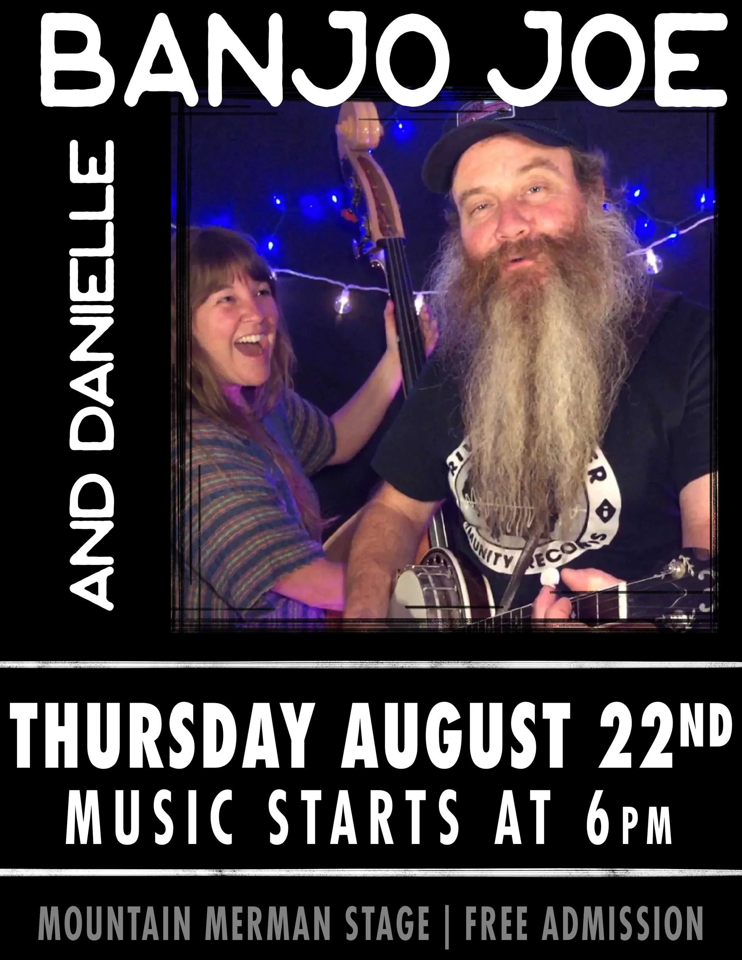 Banjo Joe and Danielle are a vibacious duo playing their own brand of bluegrass on banjo and upright bass. Sweethearts for over a decade, they are currently touring the western US in a converted school bus and performing live music.